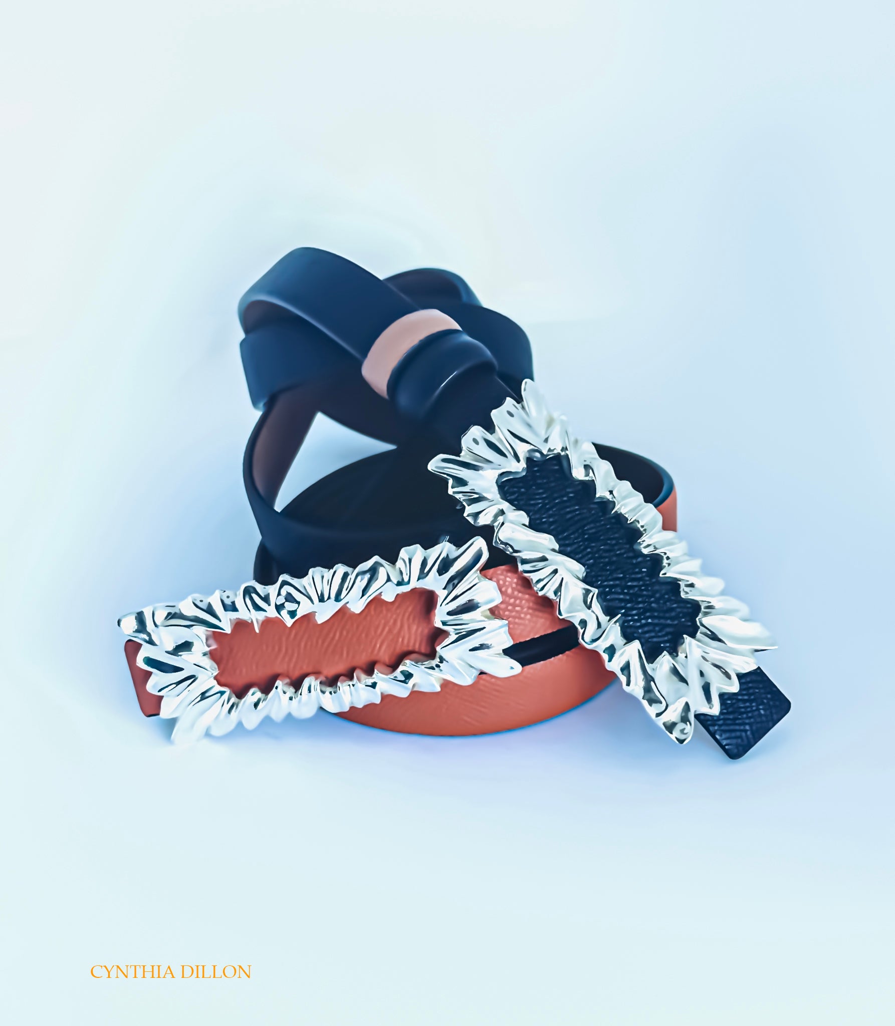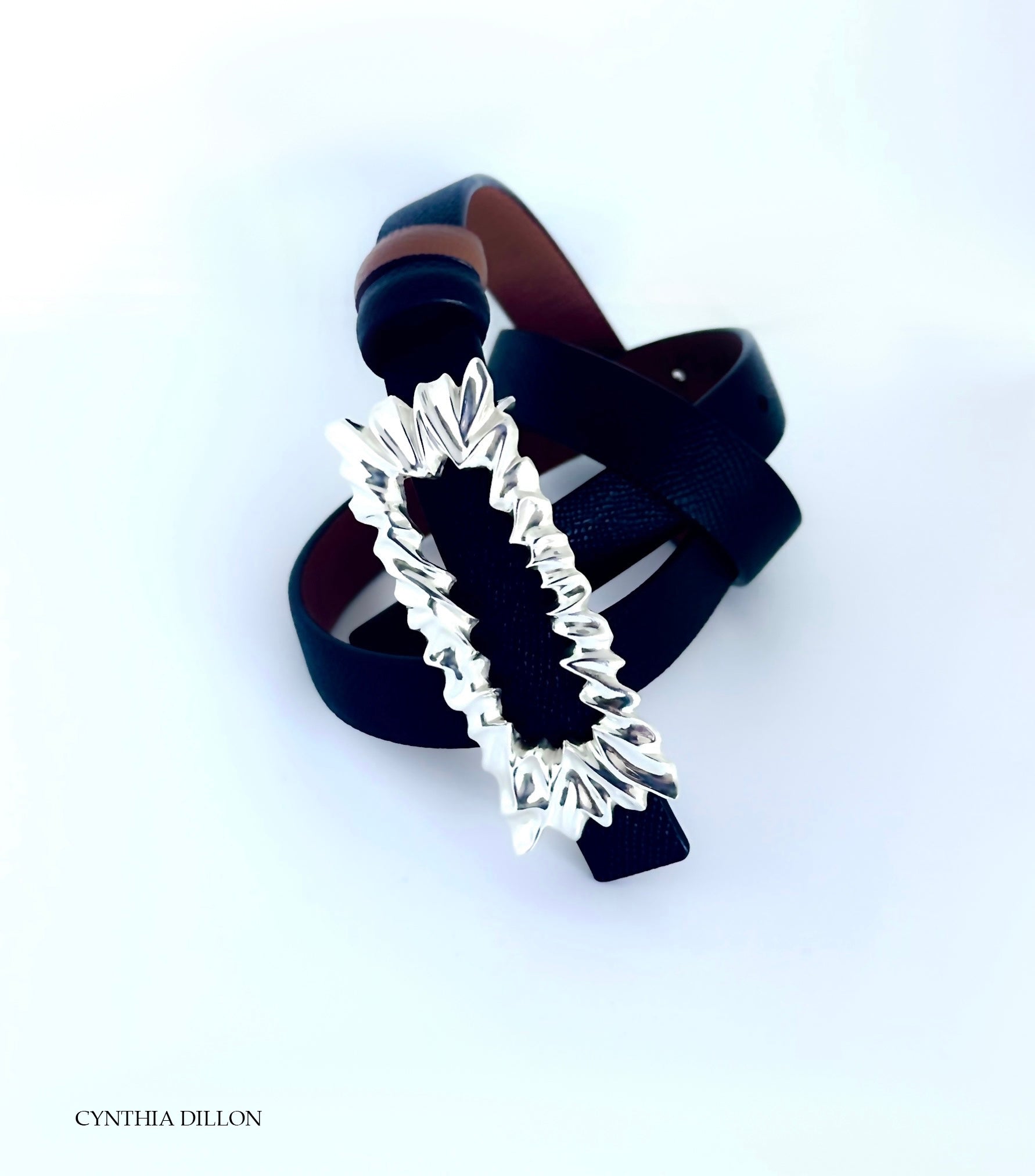 View full detailsDiolun Designs freeform "Lava" Buckle in Sterling Silver with reversible Leather belt