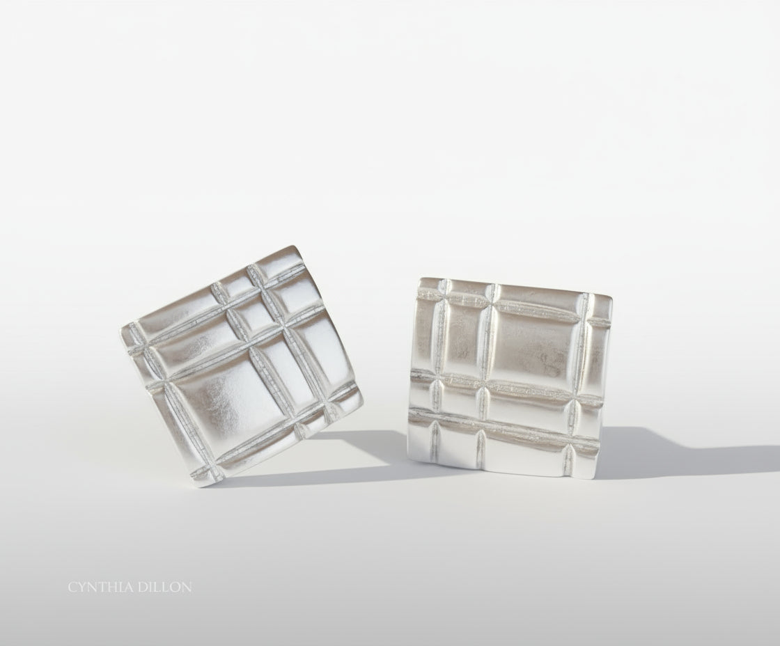 Diolun Designs "Mondrian" Square Earrings in Sterling Silver . (in 18Kt. Gold By Special Order) By Cynthia Dillon