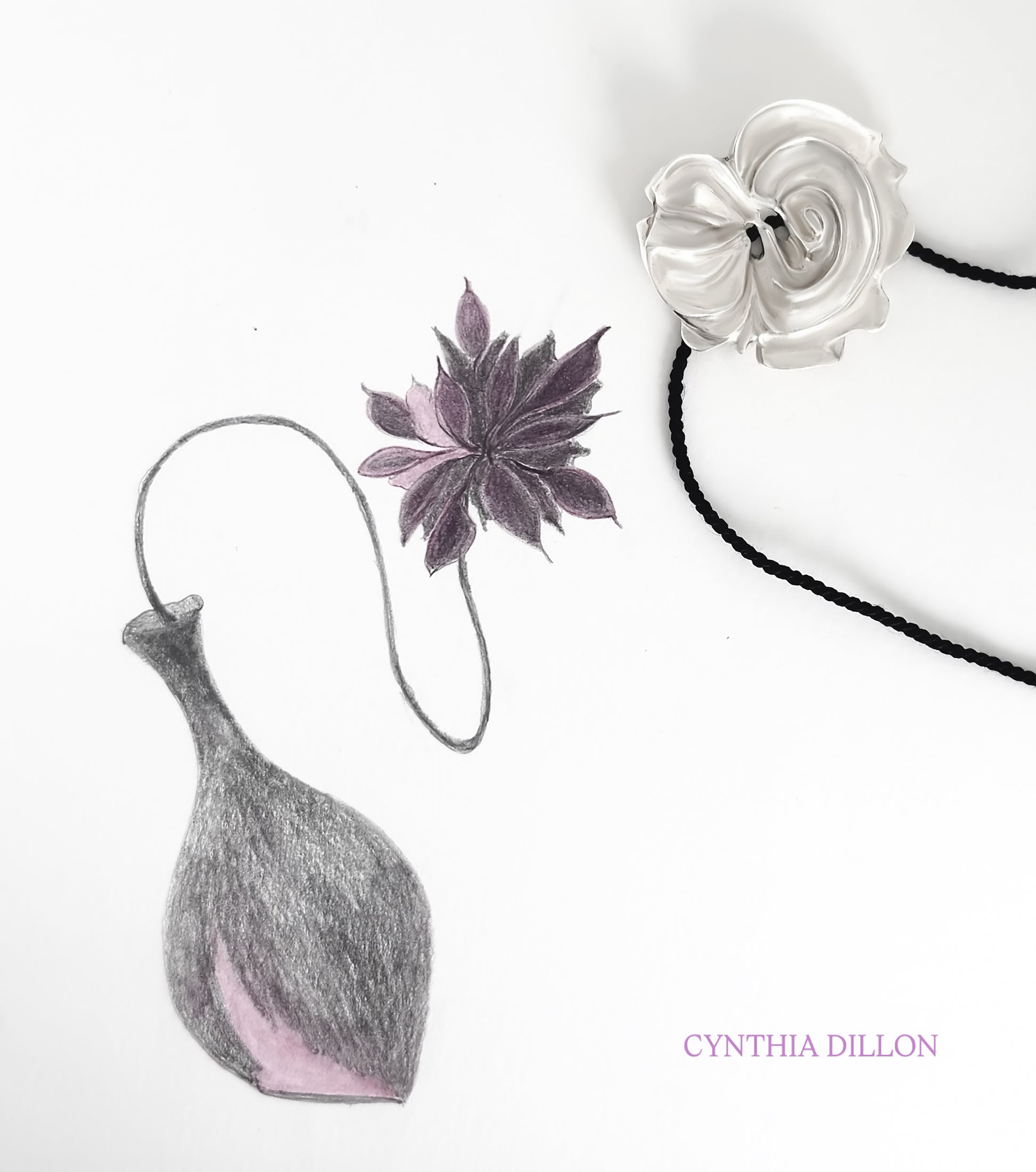 View full detailsDiolun Designs "Rose" (Necklace) (LGE). Available in Sterling Silver( or 18KT Gold. By Special Order- Price submitted upon request) Design by Cynthia Dillon.